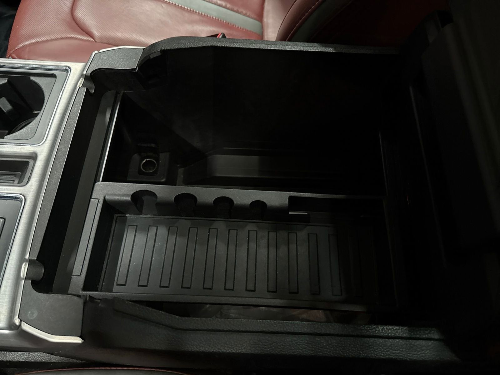 - Console insert material: Leather and aluminum console insert