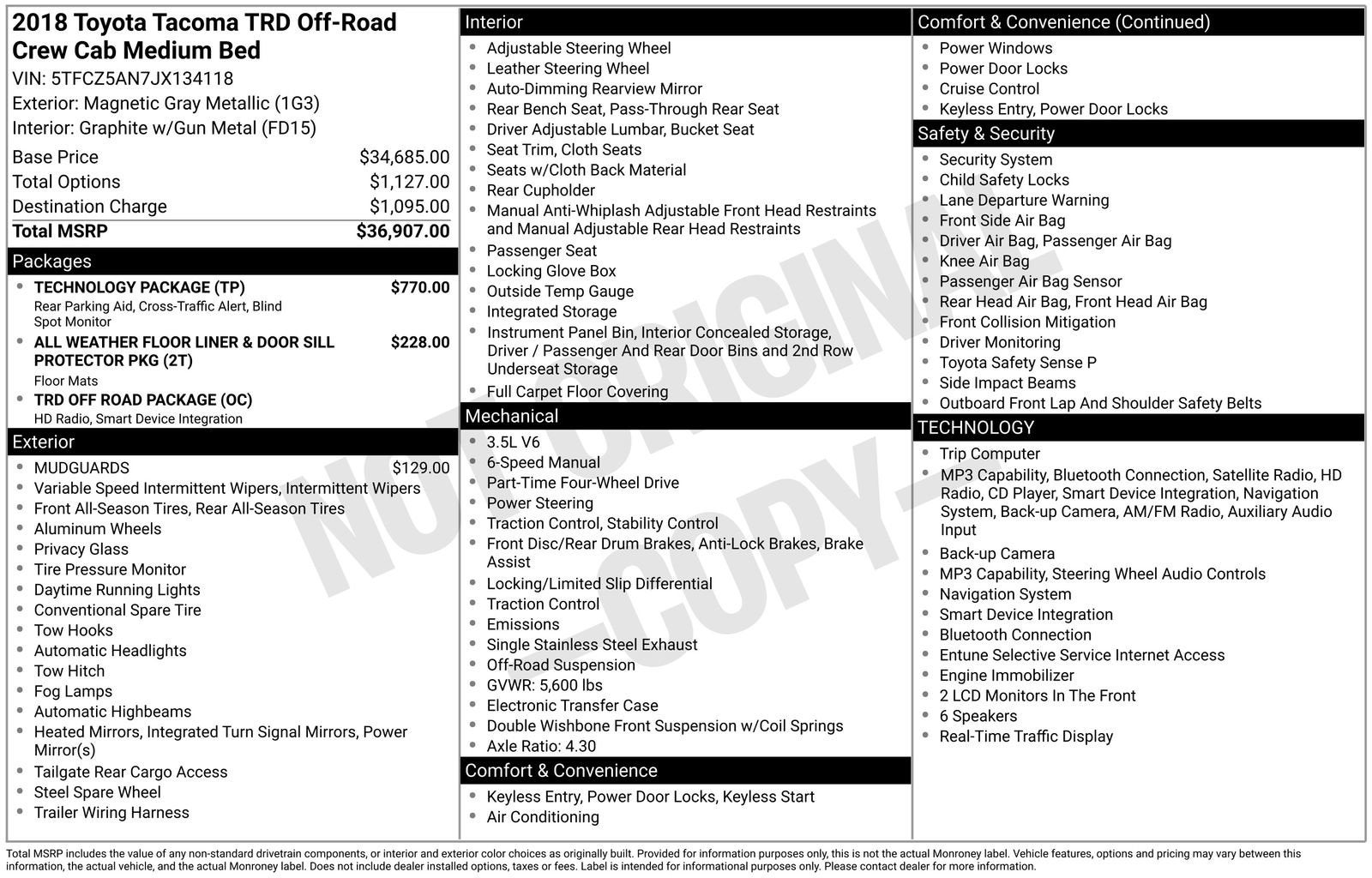 Chevrolet of Everett is proud to be recognized as the 2025 DealerRater Chevrolet Dealer of the Year in Washington State.Elevate your driving experience with this meticulously maintained 2018 Toyota Tacoma SR V6. Boasting a powerful 3.5L V6 engine paired with a smooth 6-Speed Automatic transmission and 4-Wheel Drive, this Tacoma is built for both work and play. Highlighted by its impressive -- ALL WEATHER FLOOR LINER & DOOR SILL PROTECTOR PKG- TECHNOLOGY PACKAGE with Color Keyed Rear Bumper, Rear Parking Assist Sonar, Blind Spot Monitor w/Rear Cross Traffic AlertThis Tacoma also comes equipped with a host of sought-after features, including 6 Speakers, AM/FM radio, CD player, Air Conditioning, Power Windows, Steering Wheel Mounted Audio Controls, Cruise Control, Electronic Stability Control, Traction Control, and more.With a city fuel economy of 18 MPG and highway rating of 22 MPG, this Tacoma delivers the perfect balance of power and efficiency to tackle your daily commute or weekend adventures. The exterior sports an eye-catching design, while the interior offers comfortable, durable fabric seating and thoughtful storage solutions to keep you organized on the go.Whether you're hauling gear, towing a trailer, or simply enjoying the open road, this 2018 Toyota Tacoma SR V6 is a versatile and capable companion. Experience the difference quality craftsmanship and attention to detail make - schedule your test drive today.Schedule your test drive today - call 425-265-8003 or visit Chevrolet of Everett for a Better Experience.Chevrolet of Everett is proud to be part of the Harnish Auto Family, a trusted local automotive group built on the belief that People Matter. For over four decades, Harnish has served drivers across Washington with a commitment to family-style care, transparent service, and a quick, hassle-free buying experience. When you choose Chevrolet of Everett, you get more than a quality pre-owned vehicle—you get the Better Experience from a team committed to taking care of you before, during, and after the sale. A documentary service fee in an amount up to $200 may be added to the sale price or capitalized cost. The Documentary Service Fee is a negotiable fee.