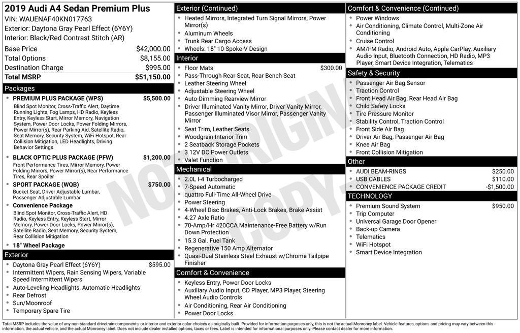 Experience the Difference at Chevrolet of Puyallup. As one of the top dealers in the NW, we make it easy. With Care-Free Maintenance , No Worry Warranties, Accessory Discounts and the best Customer Rewards Program in the NW. 2019 Audi A4 2.0T Premium Plus {Exterior Color}