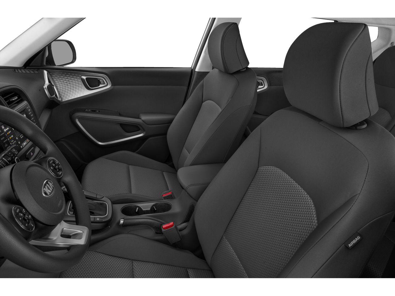 • Adjustable steering wheel and cloth bucket seats