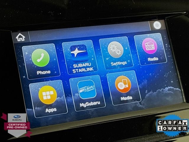- Radio: Subaru STARLINK 6.5" Multimedia Plus System -inc: AM/FM stereo, HD Radio, single disc CD player w/MP3/WMA/CRR/RW file capability, multi-touch gesture high resolution display screen, voice activated controls, Bluetooth® audio streaming and hands-free phone connectivity, Bluetooth® hands-free SMS text messaging connectivity, iPod control capability, SiriusXM All Access Radio (4 months free trial/subscription required after), SiriusXM Travel Link (4 months free trial/subscription required after), smartphone integration: AHA, Android Auto, CarPlay, Pandora and STARLINK cloud applications, USB audio system update, steering wheel audio and Bluetooth® control switches, 6 speakers (2 dash panel tweeter, 2 front door and 2 rear door), 3.5mm auxiliary input jack and front dual USB A input/charge ports
