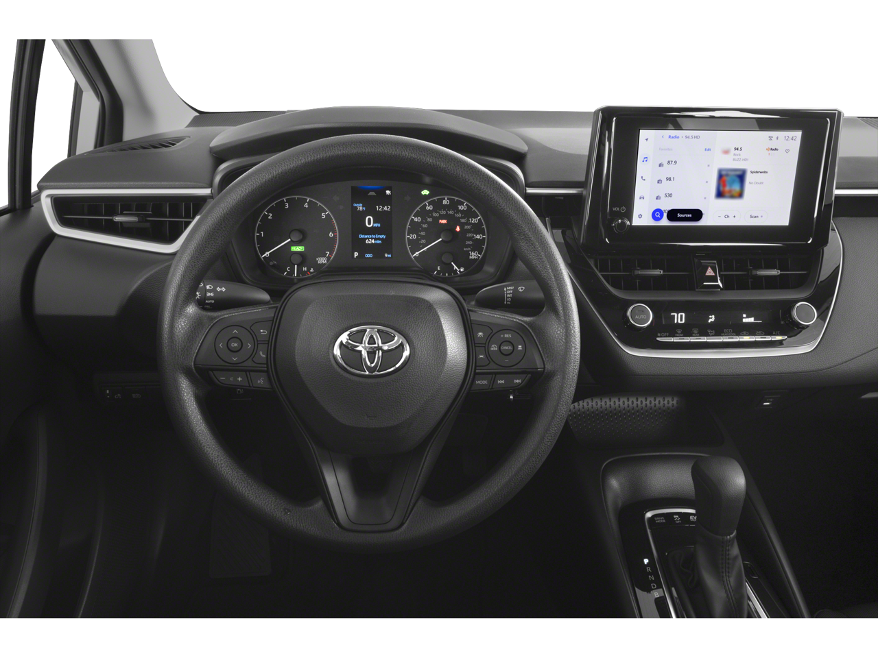 Toyota Corolla Hybrid XLE 4D Sedan 1.8L DOHC 16V VVT FWD Corolla Hybrid XLE, 4D Sedan, 1.8L DOHC 16V VVT, CVT, FWD, Midnight Black Metallic, Black w/SofTex Seat Trim, ABS brakes, Active Cruise Control, Alloy wheels, Electronic Stability Control, Heated door mirrors, Heated Front Bucket Seats, Heated front seats, Illuminated entry, Low tire pressure warning, Power moonroof, Remote keyless entry, Traction control.